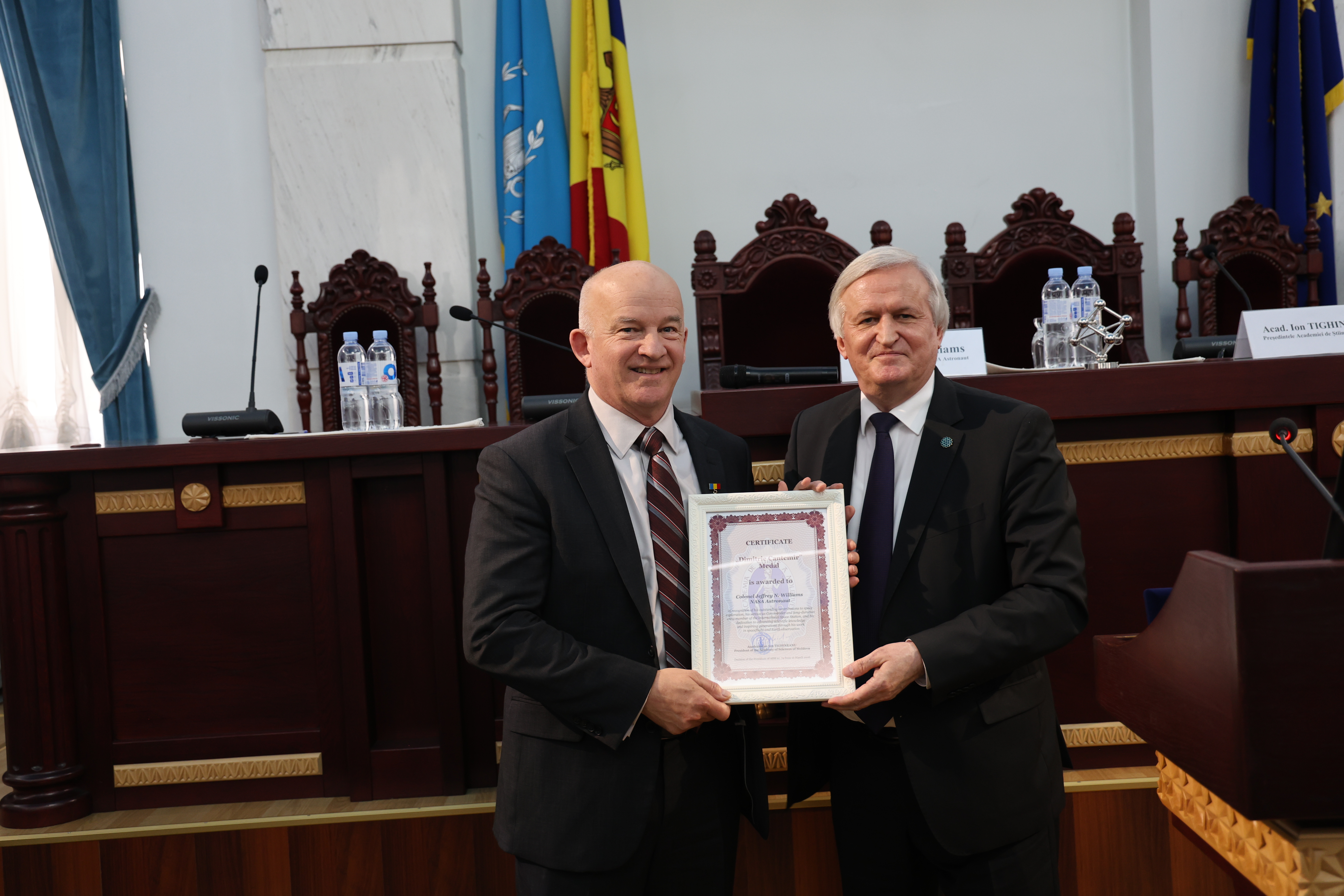 The opening of the event was marked by a solemn moment. As a sign of high appreciation for his outstanding contributions to the advancement of science and the promotion of knowledge, the Academy of Sciences of Moldova awarded Colonel Jeffrey N. Williams the “Dimitrie Cantemir” Medal.